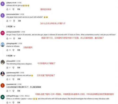 “麥迪35秒13分,日本裁判35秒吹中國13個犯規,多么無恥的國家,最后還輸了”