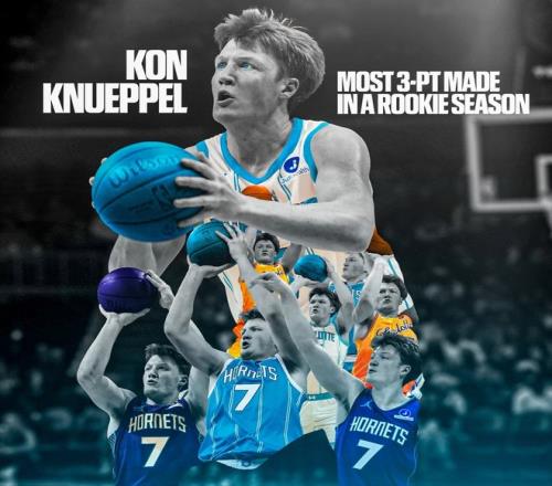 北京時間2月27日,黃蜂和步行者的比賽中,黃蜂新秀“康神”克努佩爾再次轟進8個三分球,賽季總三分球產量已達209個,超越國王隊四號秀前鋒基根穆雷,成為NBA歷史新秀三分王!穆雷在新秀賽季曾投進206個三分球,但他用了80場,打破了當時米切爾的紀錄,成為了NBA歷史新秀賽季命中三分球最多的球員,但如今,這一歷史再次被一個四號秀改寫,而克努佩爾只用了59場!