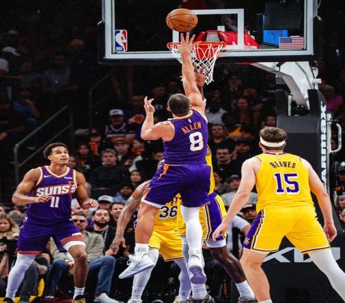 東契奇無(wú)愧聯(lián)盟首節(jié)之王,開(kāi)場(chǎng)有體能時(shí)的確無(wú)懈可擊,單節(jié)7中5拿到12分,詹姆斯則3中2拿到5分,湖人的進(jìn)攻主要就是依靠這兩人,里夫斯只拿到2分。因?yàn)闅堦囂?yáng)缺少了布克、狄龍兩個(gè)主要得分點(diǎn),杰倫-格林忌憚自己的腿筋傷勢(shì)不敢突破,替補(bǔ)席的阿倫連續(xù)命中三分成為第一進(jìn)攻點(diǎn),首節(jié)打完湖人27-22領(lǐng)先。