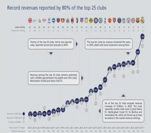 電視廣播收入上升至2.728億鎊(2024年為2.623億英鎊),主要是與歐冠相關的歐足聯分配收入。俱樂部商業方面表現強勁,收入再次顯著提高至2.632億鎊(2024年為2.183億鎊)。這得益于和阿迪達斯的續約和擴展協議引領了合作伙伴關系,并得到了Sobha Realty全年收入的支持。