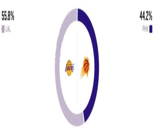 賽前,美媒ESPN對本場比賽進行了勝率預測,湖人隊勝率55.8% ,略占優勢,太陽勝率則僅有44.2% 。