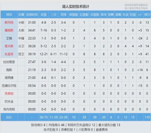 湖人遭遇3連敗,34勝24負暫列西部第6,太陽34勝26負西部第7,兩隊僅剩1個勝場差。過去兩場,太陽場均79分,今天打湖人狂轟113分。湖人后衛(wèi)斯瑪特賽后說:“作為競爭者,這樣的比賽確實能給我們帶來傷害。”最后看看數(shù)據(jù):