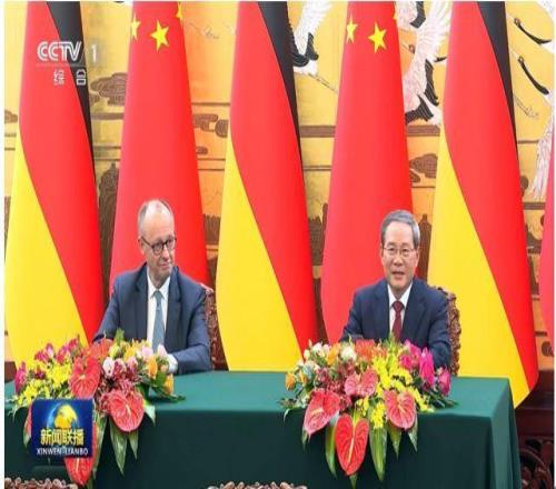 德國總理默茨、中國國務院總理李強共同見證簽約儀式 圖:總臺《新聞聯(lián)播》