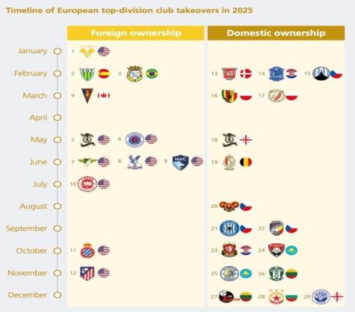 2025年,美資收購了9家歐洲頂級聯賽俱樂部,勢力版圖進一步擴張。