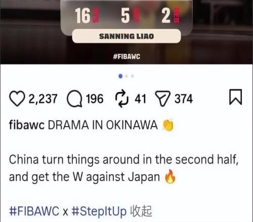 國際籃聯發布了一個推文,表示: