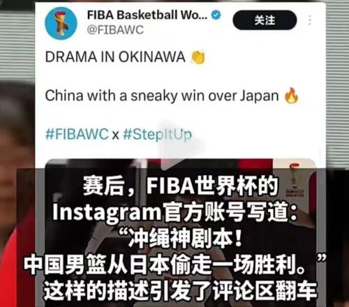 然而,讓人感到遺憾的是,中國男籃努力在客場擊敗日本隊,拿到比賽勝利,卻遭到了國際籃聯的調侃,在賽后,FIBA國際籃聯在網絡平臺上是這樣寫道:沖繩的神劇本!中國男籃從日本偷走一場比賽勝利。