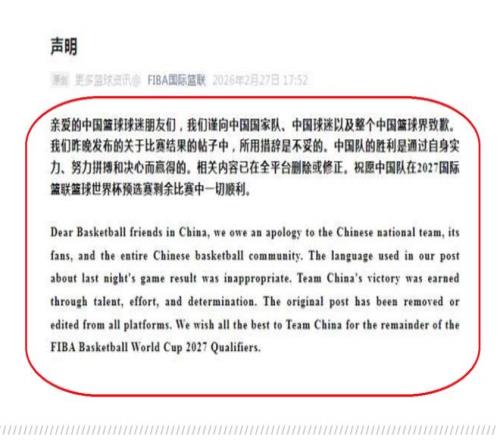 晚上6點!國際籃聯正式發布了一份聲明:向中國男籃,向中國男籃球迷進行道歉!
