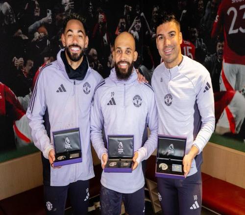在分別達成英超特定進球、出場數里程碑后,曼聯球員卡塞米羅、姆伯莫和馬特烏斯-庫尼亞獲贈紀念獎章。
