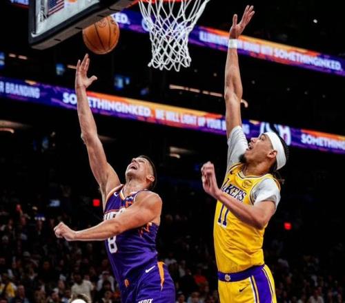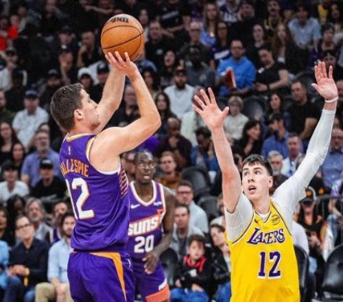 NBA常規賽,太陽坐鎮主場迎擊湖人隊。本場比賽之前,湖人34勝23負排名西部第6,近段時間湖人狀態不算穩定,遭遇2連敗,對陣季后賽級別的對手,球風強硬的對手,確實要差點意思,雖然湖人全員健康,東契奇,詹姆斯,里夫斯三巨頭聯手,又在交易截止日前引進肯納德,迎來了本賽季聯盟第一準的三分射手,但湖人陣容還是存在短板,替補得分能力不足,再加上核心防守水平有限,可能會阻礙他們在季后賽進一步突破上限。另一邊的太陽隊,本場比賽之前,33勝26負排名西部第7,盡管去年失去了杜蘭特和比爾,但太陽今年仍然有沖擊季后賽的機會。