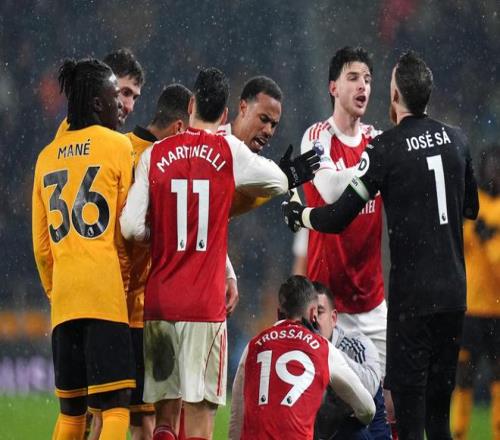 狼隊社交媒體團隊在視頻中展示了這些畫面:加布里埃爾-馬丁內利在阿森納2-1領先時,用手比出比分向主場球迷挑釁;阿森納在領先期間故意拖延角球開出;加布里埃爾-馬加良斯在一次看似頭部碰撞后倒地,起身繼續比賽,遭到視頻嘲諷。
