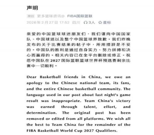 FIBA最終刪帖、雙語道歉,Instagram評(píng)論區(qū)同步發(fā)聲。誠意有,但傷害已成。球迷要的不是事后補(bǔ)救,是賽前的尊重,是裁判席上的公平。