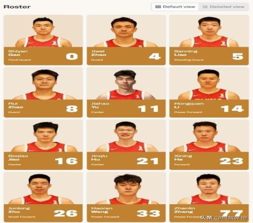 中國男籃:高詩巖、趙繼偉、廖三寧、趙睿、余嘉豪 、李弘權、焦泊喬、胡金秋、賀希寧、朱俊龍、王浩然、張鎮麟。
