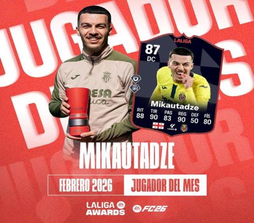 4場3球1助,比利亞雷亞爾前鋒米卡塔澤當選西甲2月最佳球員 懂球帝 2026-02-28 19:18:48 北京時間2月28日,官方消息,比利亞雷亞爾前鋒米卡塔澤當選西甲2月最佳球員。官方消息,比利亞雷亞爾前鋒米卡塔澤當選西甲2月最佳球員,這位格魯吉亞前鋒在2月出戰的4場比賽中貢獻3球1助攻,表現亮眼。米卡塔澤在對陣西班牙人、赫塔費、萊萬特的比賽中均取得進球,在對陣西班牙人的比賽中完成傳射建功。西甲免費觀看_萊萬特免費觀看_赫塔菲免費觀看_西甲高清在線_萊萬特高清在線_赫塔菲高清在線 西甲 萊萬特 赫塔菲 米卡塔澤 世界足球先生 比利亞雷亞爾隊 上一篇: 8球2助攻!曝弗拉霍維奇主動投奔巴薩,0轉會費,年薪2200萬歐元 下一篇: 退役后在體育用品店工作,馬蒂厄:因為一些事給我帶來了麻煩