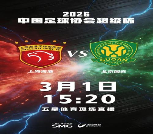北京時間3月1日,2026賽季中國足壇的第一場正式比賽超級杯,就將在上海海港和北京國安之間展開。五星體育將從15:20起帶來本場比賽的直播,敬請關(guān)注!