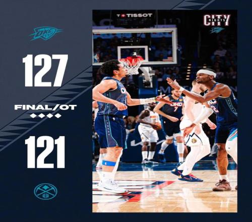 常規(guī)賽,雷霆加時127-121戰(zhàn)勝掘金。