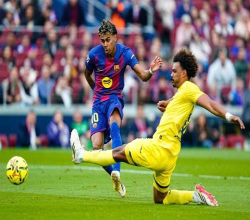 此役主場對陣比利亞雷亞爾,首發(fā)出戰(zhàn)的亞馬爾在比賽第28分鐘、第37分鐘和第69分鐘各入一球,上演帽子戲法。