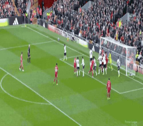 第43分鐘,薩拉赫開出角球,鮑恩后蹭解圍不遠,埃基蒂克冷靜回敲,麥卡利斯特外腳背凌空抽射建功,利物浦3-0遙遙領先,上半場結束,紅軍獲得7次角球,3次轉化為進球。安菲爾德仿佛變成了定位球實驗室。