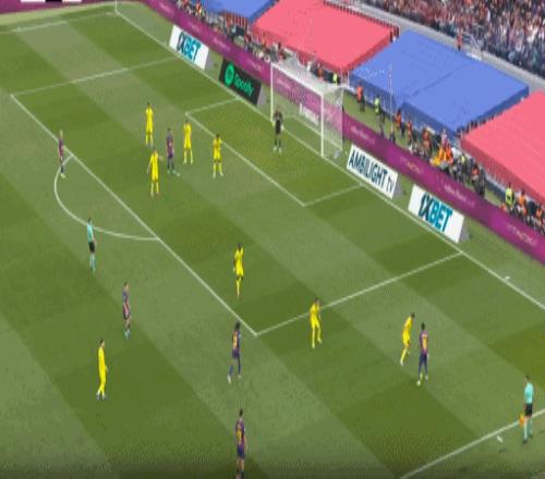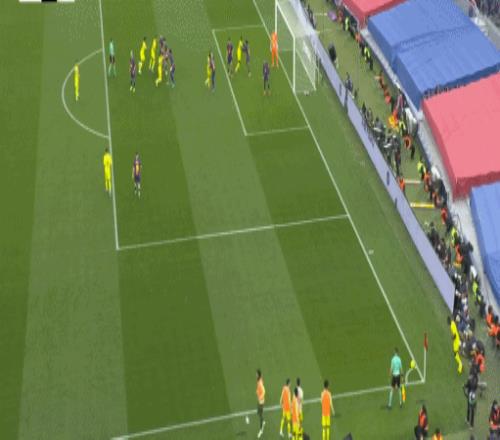 第49分鐘,帕普-蓋伊亂戰破門扳回一球,比利亞雷亞爾1-2巴薩