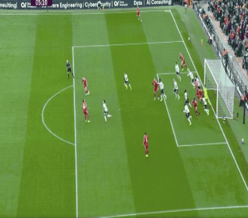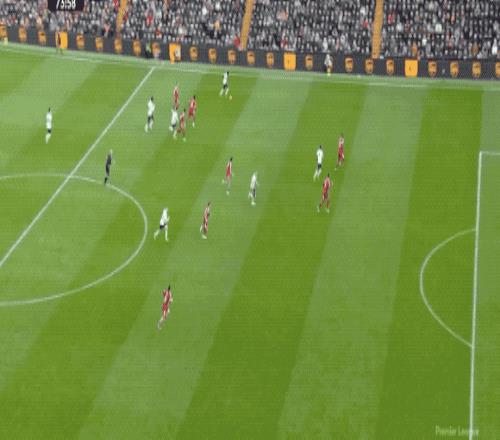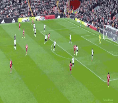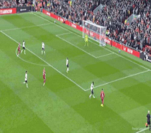 第65分鐘,利物浦打出快速反擊,索博斯洛伊將球分到右路,薩拉赫標志性地橫向擺脫,起腳射門,放了高射炮。