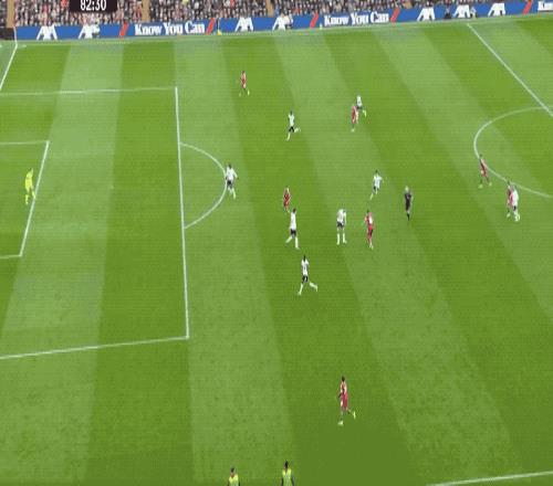 第35分鐘,利物浦防線出現配合失誤,薩默維爾停球和射門的銜接有些慢,利物浦三人倒地,完成封堵。