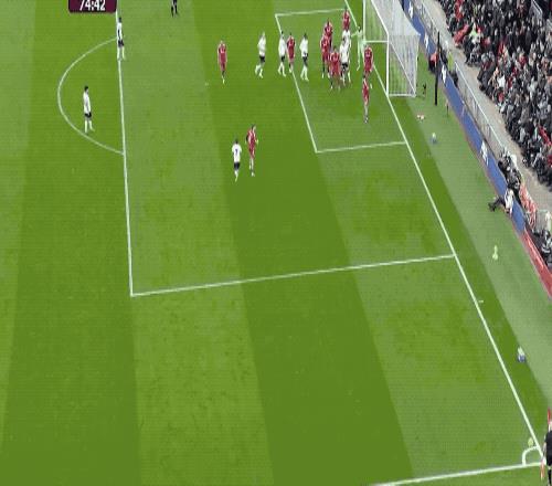 鮑文將球開出,禁區中路兩隊球員全部將球漏過,卡斯特拉諾斯后點將球頂進。