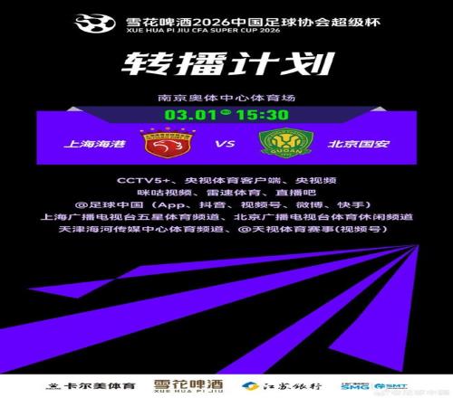 2026 賽季中國足協(xié)超級杯,新版京滬大戰(zhàn)卷土重來,究竟會上演怎樣的戲碼?雙方球迷拭目以待。