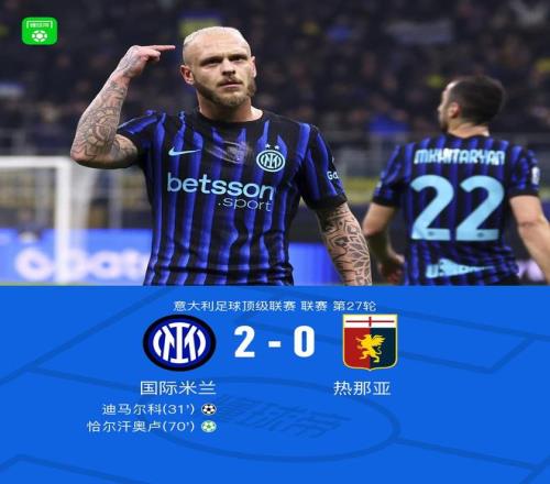 北京時間3月1日意大利足球頂級聯賽第27輪,國際米蘭主場對陣熱那亞。上半場,姆希塔良助攻,迪馬爾科凌空破門。下半場,路易斯-恩里克造點,恰爾汗奧盧主罰命中。全場比賽結束,國米2-0戰勝熱那亞。
