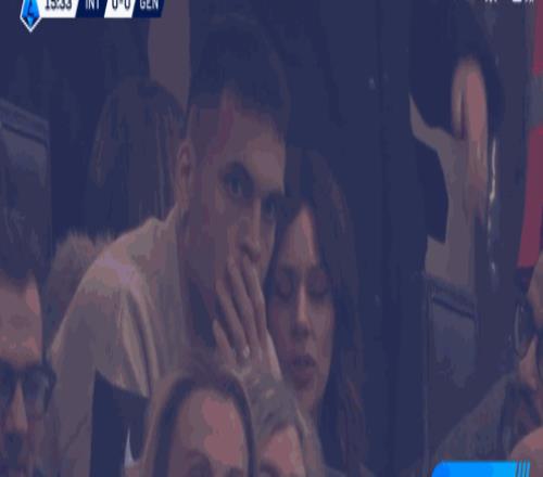 第16分鐘,鏡頭給到場邊了,勞塔羅看臺觀戰
