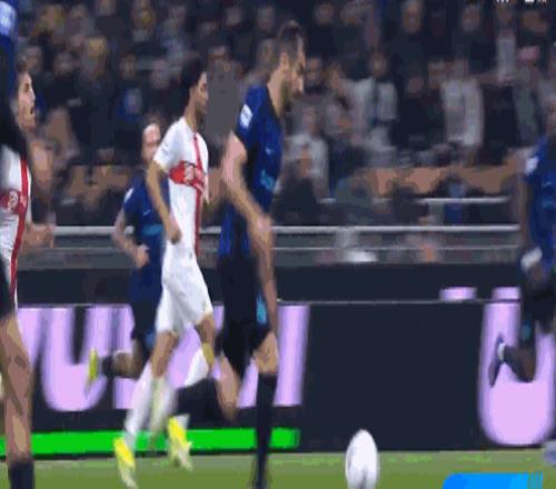 第13分鐘,國米開出角球,阿坎吉頭球攻門高出