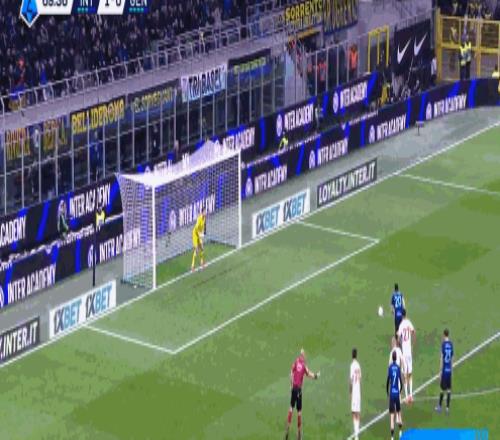 第32分鐘,姆希塔良送出精準過頂球,迪馬爾科凌空抽射破門,國米1-0