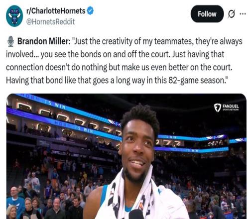 米勒賽后坦言身旁的隊友都創造力十足,并且一直很投入,球員之間場上場下擁有這樣的羈絆,只會讓球隊變得越來越強,在漫長的82場常規賽中,這樣的凝聚力至關重要,是球隊走得更遠的底氣所在。