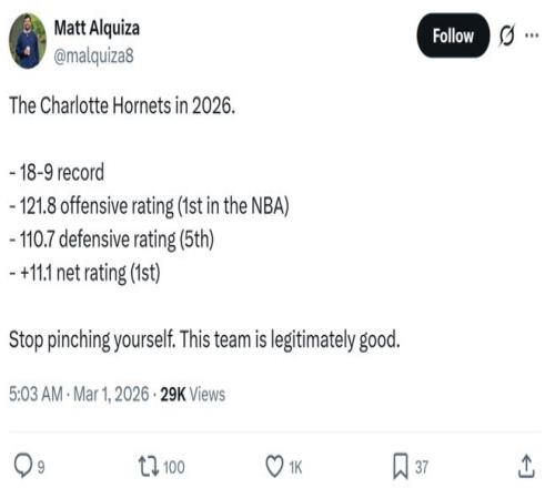 在本賽季開始前,沒人能夠想象這支黃蜂會交出如此亮眼的表現,因為他們已經連續9年無緣季后賽,是NBA目前遭遇季后賽荒時間最長的球隊。