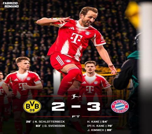 全場比賽結束,比分定格在2-3,拜仁客場逆轉雙殺多特,豪取各項賽事5連勝!