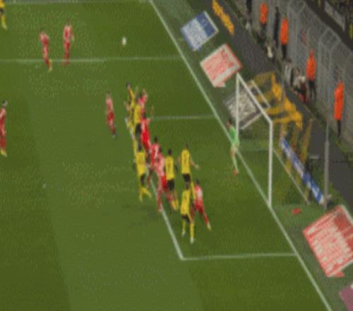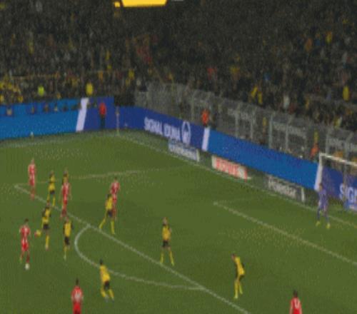 來到第26分鐘,多特獲得任意球機會,斯文松將球開出,施洛特貝克躍起頭球破門,黃黑軍團1-0領先!