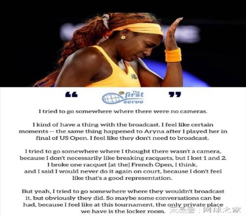 這一創舉的直接導火索,來自上個月澳網發生的一幕。當時,美國名將高芙在女單八強被爆冷出局后,強忍怒火回到球員通道怒摔球拍,畫面卻被大會鏡頭捕捉并直播,引發了關于球員隱私的廣泛爭議 。包括斯瓦泰克、德約科維奇在內的多位網壇巨星都曾公開呼吁,希望外界尊重球員場外的生活空間,不被打擾 。