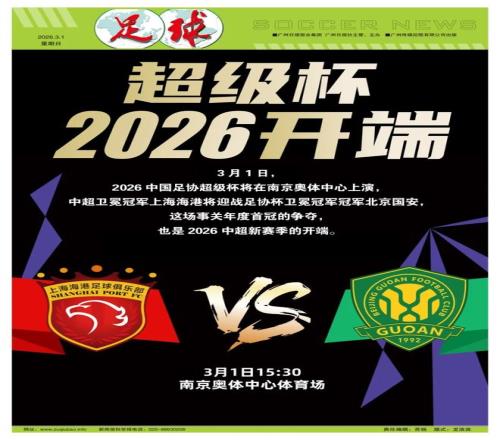 特約撰稿/宋詞3月1日下午3點30分,2026中國足協超級杯將在南京奧體中心上演,去年的足協杯冠軍北京國安將迎戰聯賽冠軍上海海港。這是國安新帥蒙哥馬利上任后的首場正式比賽,同時也是球隊冬窗換血后的第一次考試。