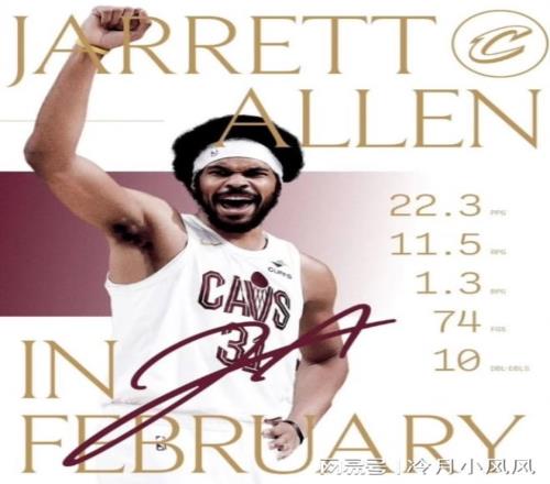 今日,騎士官方曬出了球隊中鋒賈勒特阿倫整個2月份的場均數據,盛贊其表現。圖中顯示,2月份,阿倫出戰11場比賽,6次20+,1次40+,10次貢獻兩雙(聯盟同期次數最多),場均可以貢獻22.3分11.5籃板1.3蓋帽,命中率達到了恐怖的74%(沒有一場比賽的命中率低于60%),幫助騎士取得了8勝3負的不俗戰績。