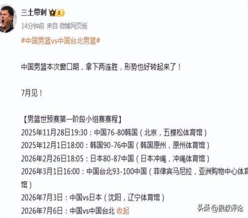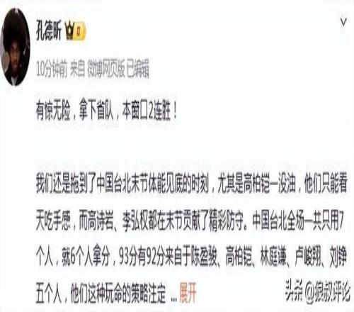 北京時間3月1日,男籃世預賽窗口期,中國男籃100-93擊敗中國臺北男籃,取得了世預賽的兩連勝。