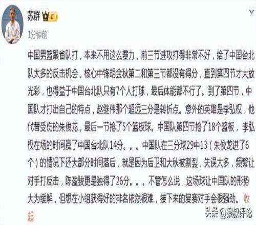 媒體人蘇群發(fā)文點評: