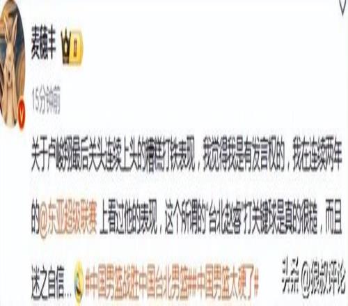 媒體人楊毅在最后時刻的點評,同樣提到了盧峻翔,中國臺北男籃正常應該交給陳盈駿和林庭謙處理,而盧峻翔太想當英雄。