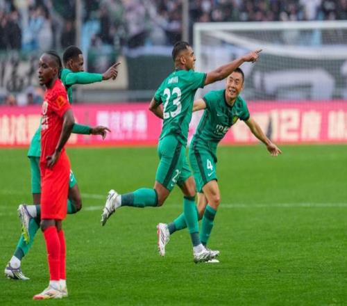 3月1日,北京國安隊球員賽后慶祝勝利。新華社記者 李博 攝
