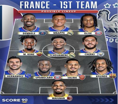 法國一隊(可能首發(fā)|Score90)(年齡按2026年2月16日)