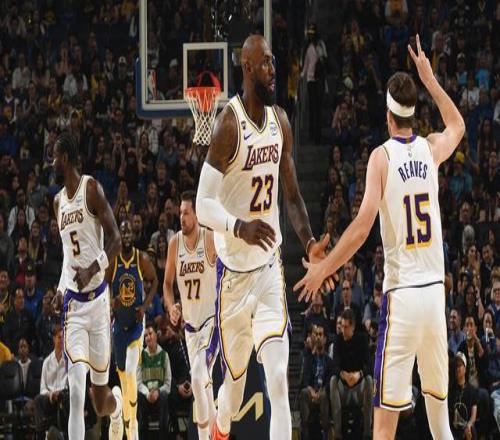 北京時間3月1日,洛杉磯湖人造訪客場以129-101大勝金州勇士,止住三連敗,勒布朗-詹姆斯在此役13中7高效貢獻22分7籃板9助攻率隊重返勝軌。