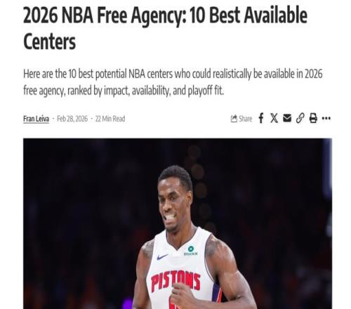 準備開搶!在常規賽進入沖刺階段,美媒《fadeawayworld》提前評選出26年自由市場10大中鋒,其中湖人艾頓第6,湖人心上人凱斯勒高居第二。