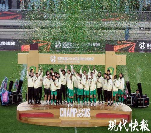 現代快報訊(記者 王衛/文 顧煒 顧聞 劉暢/攝)3月1日下午,中國足協超級杯決賽在南京奧體舉行,在這場被諸多球迷稱為“開年大戲”的比賽中,北京國安憑借2:0的比分戰勝上海海港,捧起了2026年中國職業足球的首座冠軍獎杯。超級杯一直代表著中國職業足球的頂級水平,由上賽季中超冠軍與足協杯冠軍對決。北京國安憑借第31分鐘和第84分鐘的進球,拿下了這場比賽的勝利,捧起了超級杯冠軍獎杯。