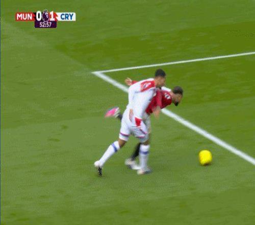 第57分鐘,B費點球騙過水晶宮門將亨德森,將比分扳為1比1平。在此之前,庫尼亞接B費塞球,巧妙轉身形成單刀之勢。拉克魯瓦在禁區線上拉人,雖很快松手示意自己無辜,但在VAR的介入下,最終還是被當值主裁認定為“犯規阻攔了對方的明顯進球機會”,被判點球加紅牌。