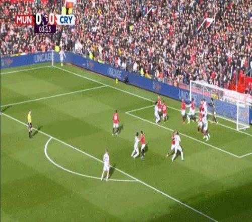 第4分鐘,布倫南·約翰遜開出左側角球,曼聯中衛約羅看球不看人,被水晶宮中衛拉克魯瓦一個急停擺脫。后者原地起跳將球頂入遠角。0比1。