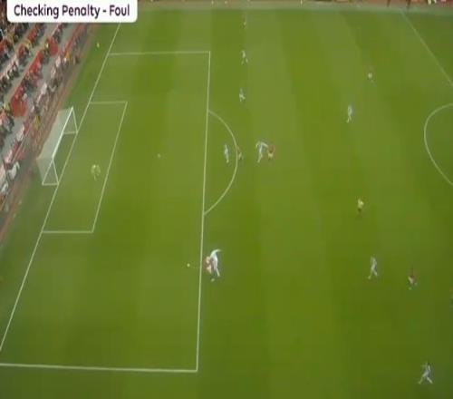 馬奎爾長時間圍住主裁判爭辯,隨后,視頻助理裁判介入判罰,并且要求主裁判回看慢鏡頭。從慢鏡頭來看,拉克魯瓦禁區(qū)外就伸手拉人,但進(jìn)入禁區(qū)之后仍然沒有松手,導(dǎo)致庫尼亞倒地。