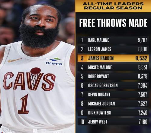 騎士對陣籃網的比賽,哈登缺席2場之后迎來復出,他在下半場也是找回狀態,全場拿到22分9籃板8助攻,幫助球隊有驚無險贏下比賽,終結了2連敗的頹勢。而在這場比賽哈登也是迎來里程碑,生涯總罰球命中數來到8535個,超越摩西·馬龍(8531個)升至歷史第3,接下來將追趕排在第2的詹姆斯(8810個)。