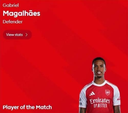 技術統計顯示,拉亞本場貢獻4次撲救,其中兩次為禁區內撲救,當選隊內最佳球員。加布里埃爾則憑借一次助攻和全場穩健的發揮,被英超官方評為全場最佳。